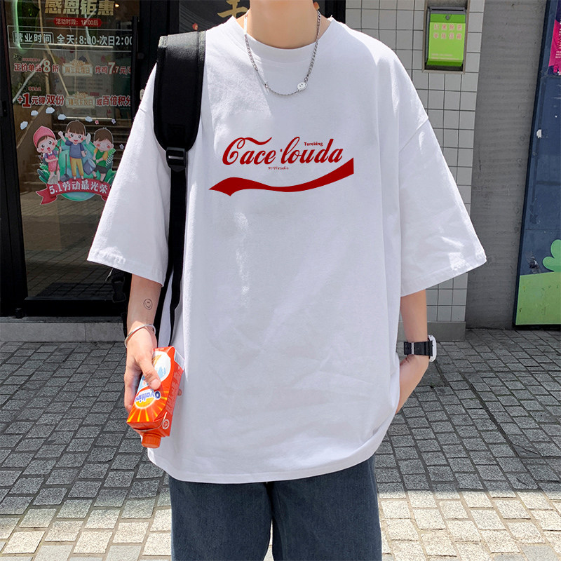 Printed Short Sleeve T-Shirt Male Summer Loose Tide Card High Street Clothes Ins Trend 100 Hitch Port Wind Mid Sleeve Tide Man Half Sleeve