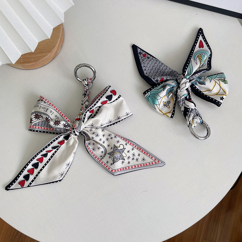 Xiaohongshu with the same silk scarf key chain car bow ribbon pendant DIY bag car with ornaments key chain