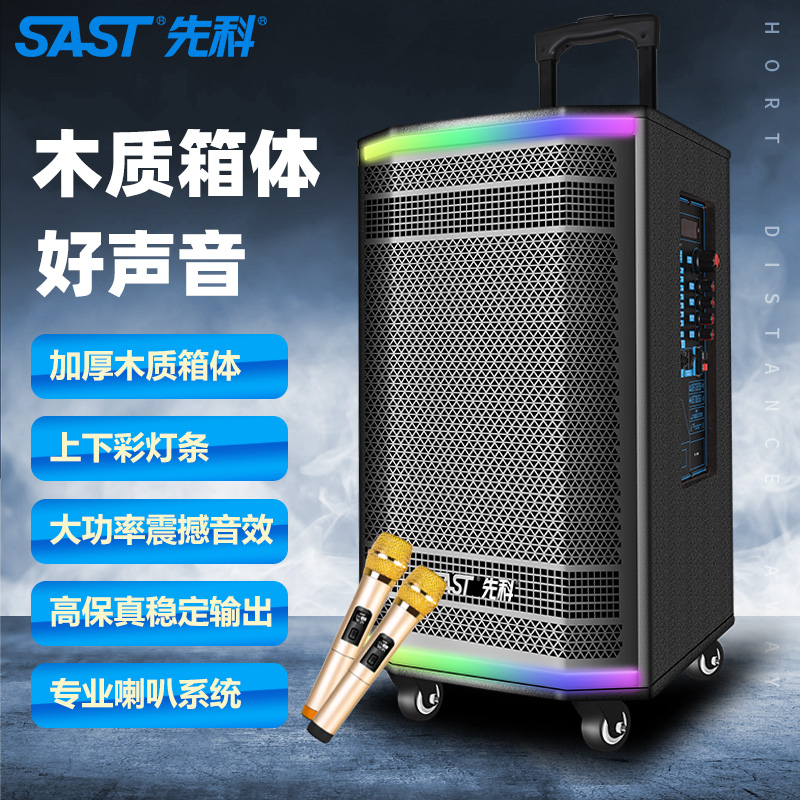 Shchenko Square Dance Acoustics Home K Song Wireless Microphone Wooden Box Triple Frequency Outdoor Pull-Lever Speaker High Power Outdoor Mobile Portable Charging Bluetooth 8 12 15 Inch Heavy Low Sound Gun Show