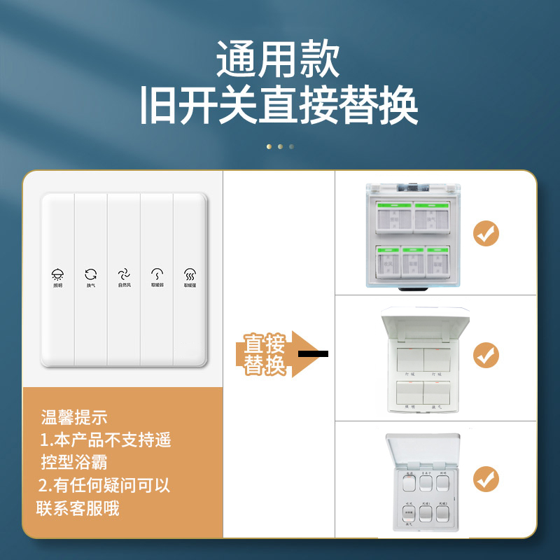 Home Big Board Bath Bully Switch Makeup Room Bath Bulwara Fan 5 All-in-one Old-fashioned Control Overhanging Ceiling Concealed panel exhaust