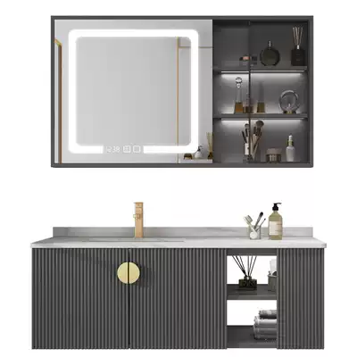 Light luxury Rock board hanging wall solid wood Bath Cabinet smart mirror cabinet dressing room washbasin combination wash sink sink