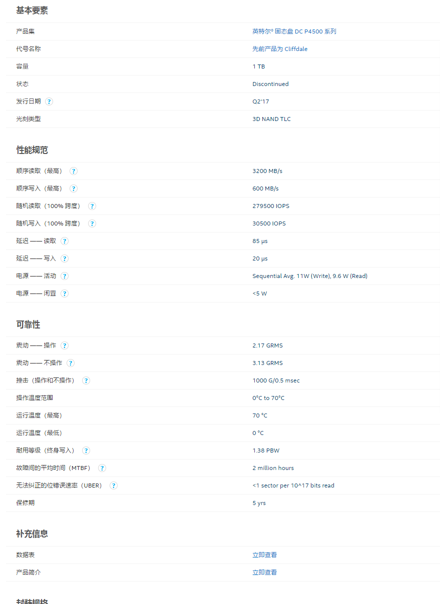 Intel Intel P4500 1T 2T U2 PCIE-class solid hard disk SSD P4510