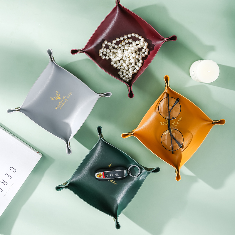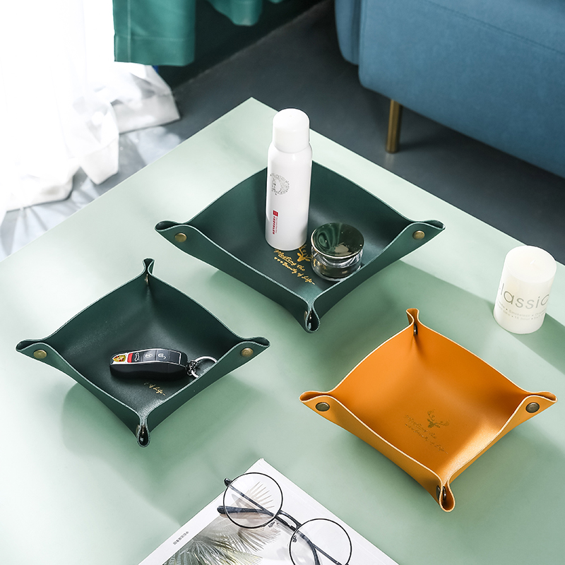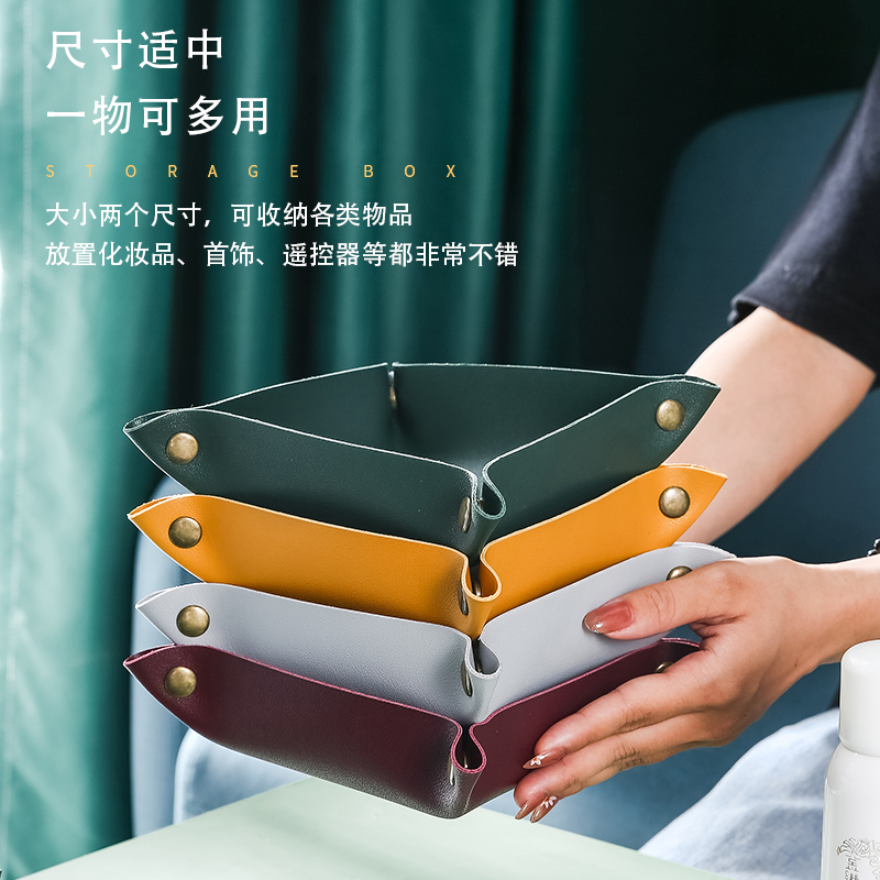 Nordic Leather Desktop Storage Box Cosmetics Sundries Organizing Box Creative Entrance Dresser Key Storage Tray
