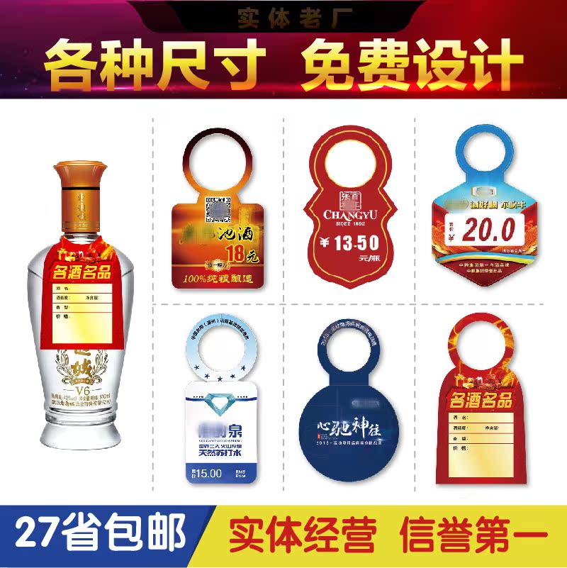 Wine label Pendant Bottle Mouth Hanging Sign Custom Wine Bottle Drink Bottleneck Sleeve Price Tag Advertising Card Promotion Card Print-Taobao