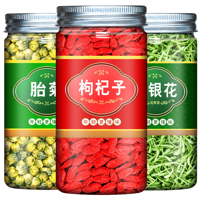 Chrysanthemum (Tongxiang fetal chrysanthemum) Honeysuckle (Fengqiu, Henan) Lycium barbarum (Ningxia wolfberry)