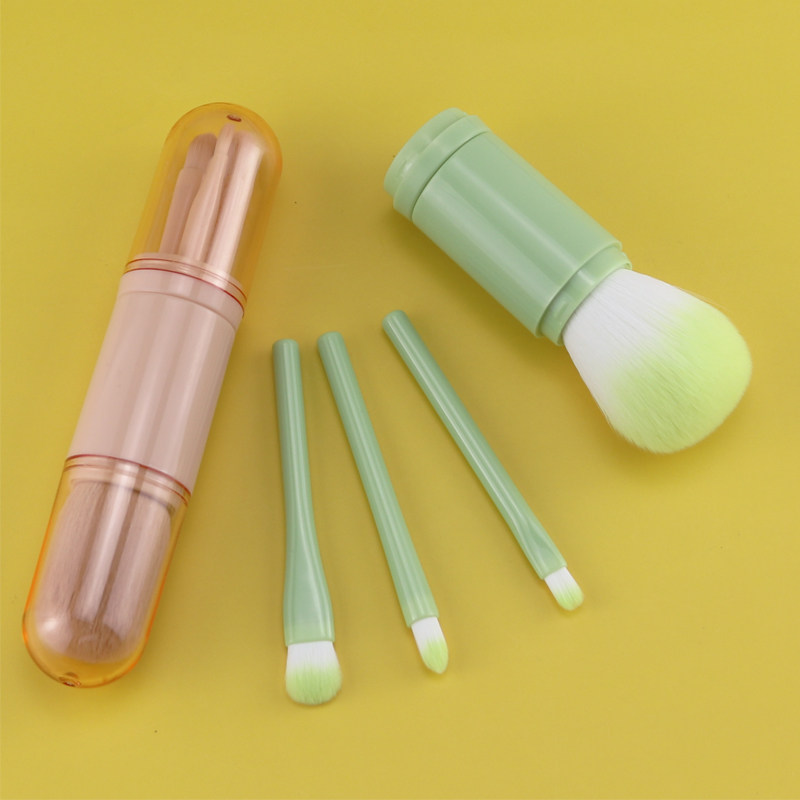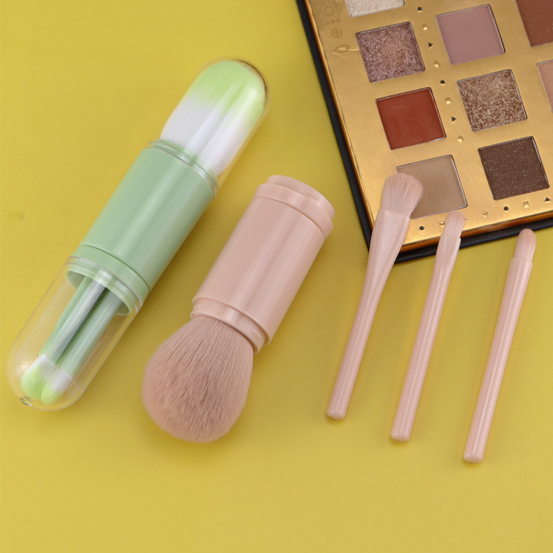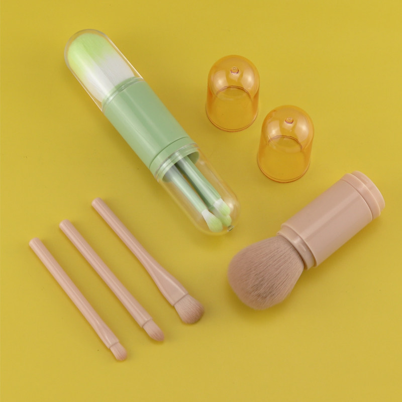 Portable retractable multi-function makeup brush loose powder blush brush with lid four-in-one set brush eye shadow brush Cangzhou super soft brush