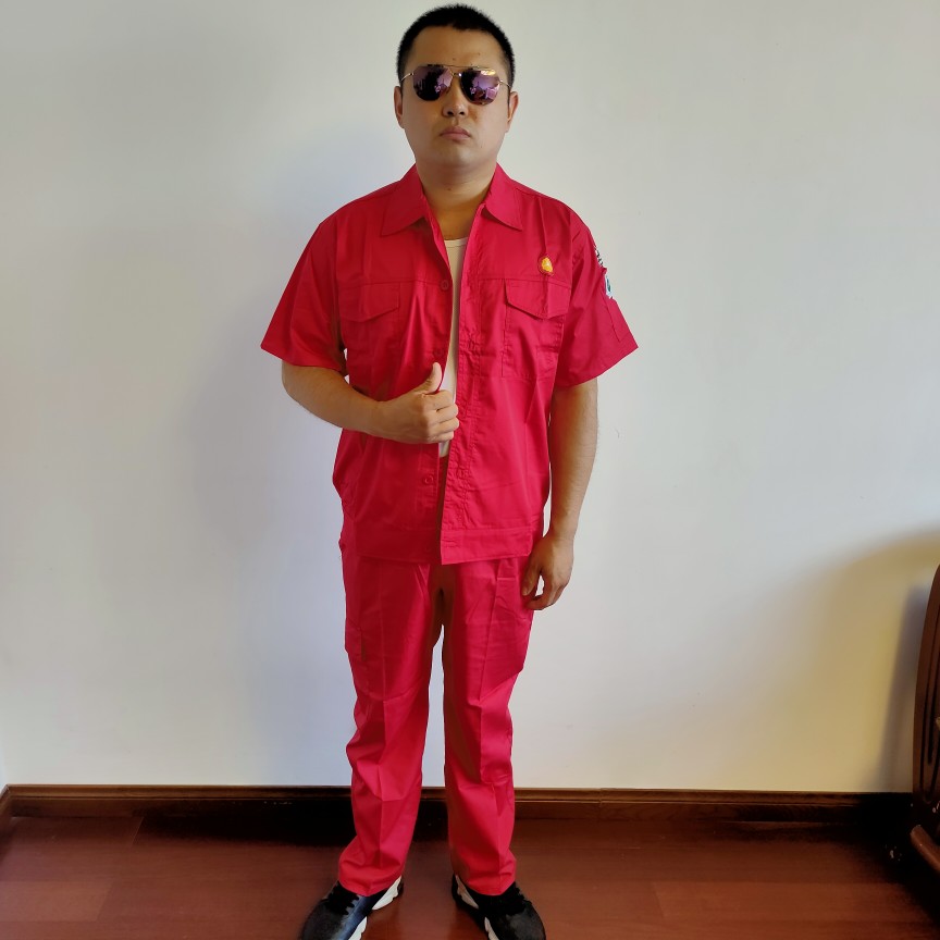 PetroChina Oilfield summer big red anti-static half-sleeved short-sleeved breathable thin labor insurance overalls suit for men and women
