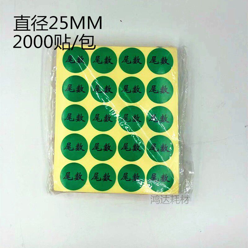 Yellow mantissa label diameter 30mm warehouse material self-adhesive label material green mantissa 25MM logo sticker
