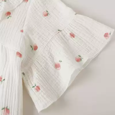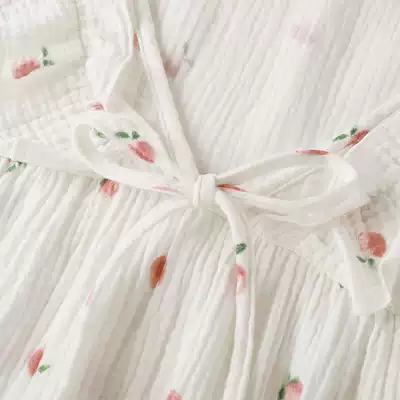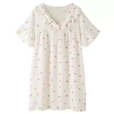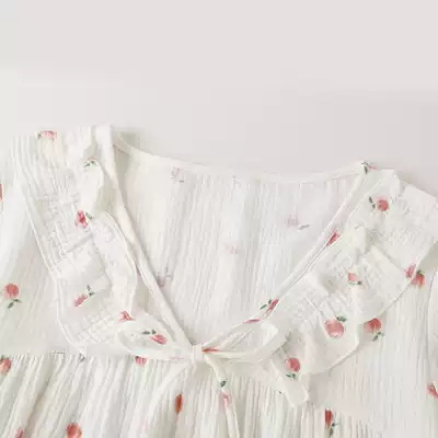 White peach bubble water~Japanese sweet lace cotton gauze pajamas women's summer short-sleeved loose girl night dress