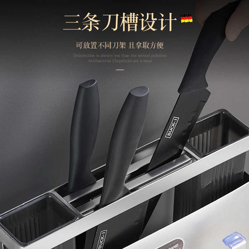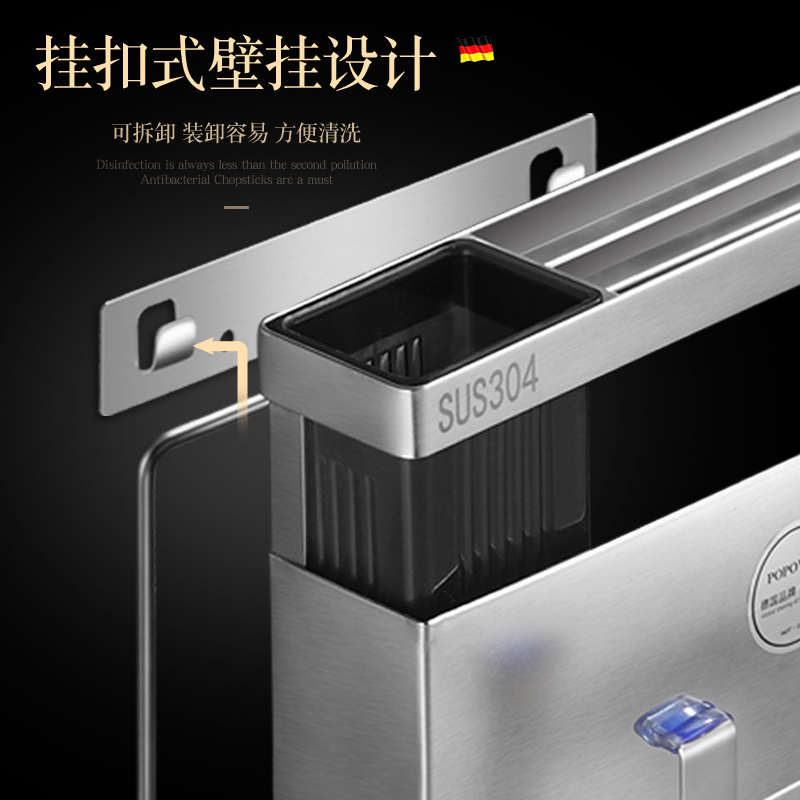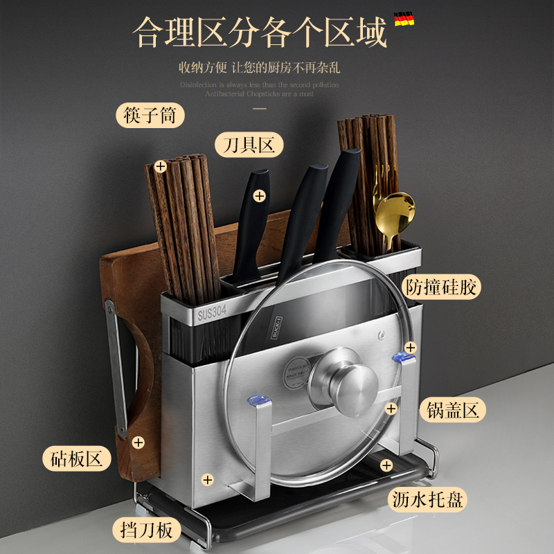 Stainless steel knife rack kitchen shelf tool seat chopping board chopsticks tube integrated punch-free wall-mounted