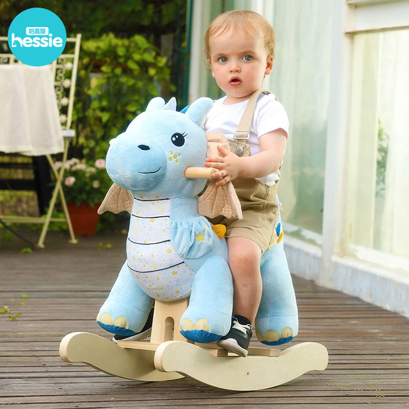 Haxi Uk children rocking horse solid wood plush Trojan horse rocking horse little Trojan horse baby boy's birthday toy