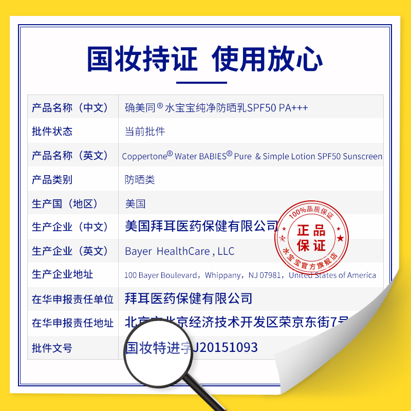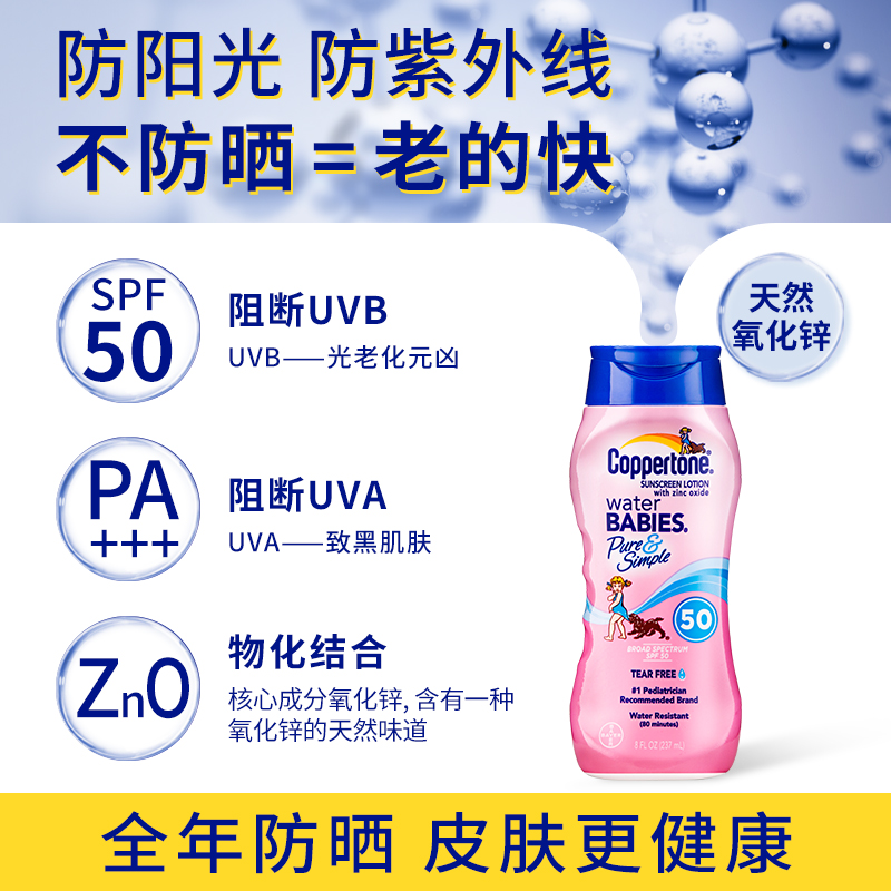 Coppertone water baby sunscreen 237ml female children student parity military training anti-UVSPF50