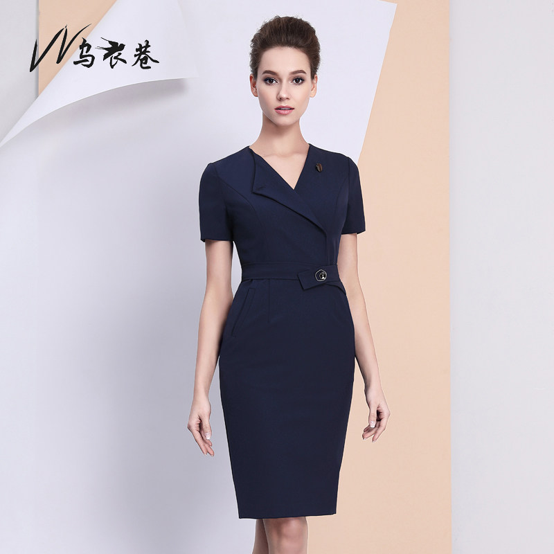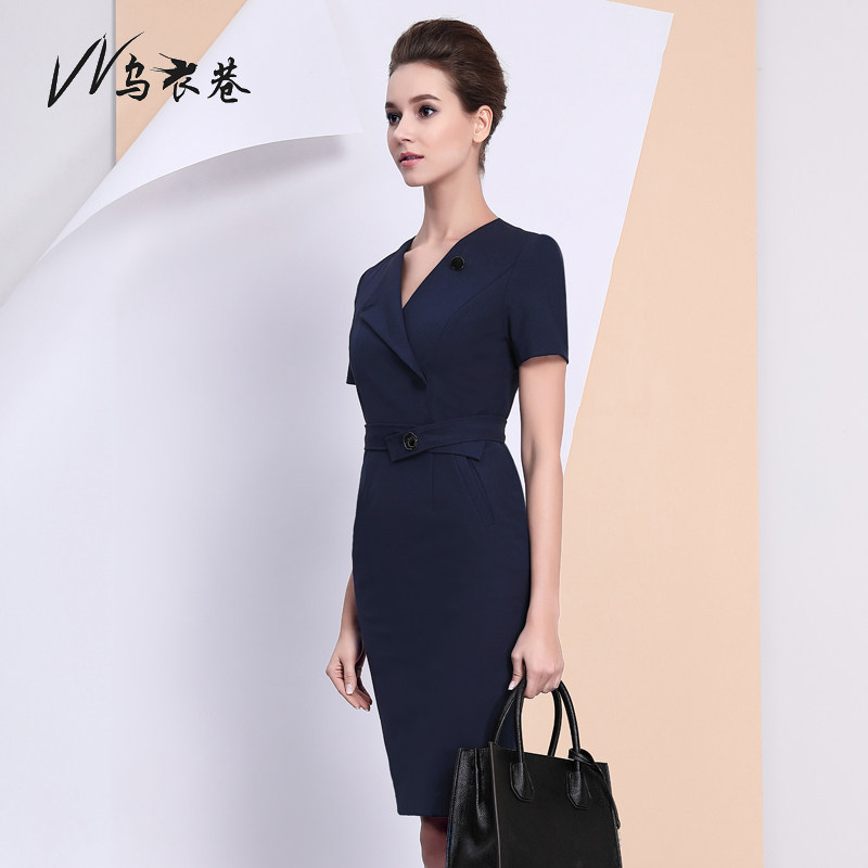 Workwear Woman Minimalist Career Foreign Dress Elegant Temperament Commute Medium Long Dress Sashimi Hip Ol Step Skirt Short Sleeves