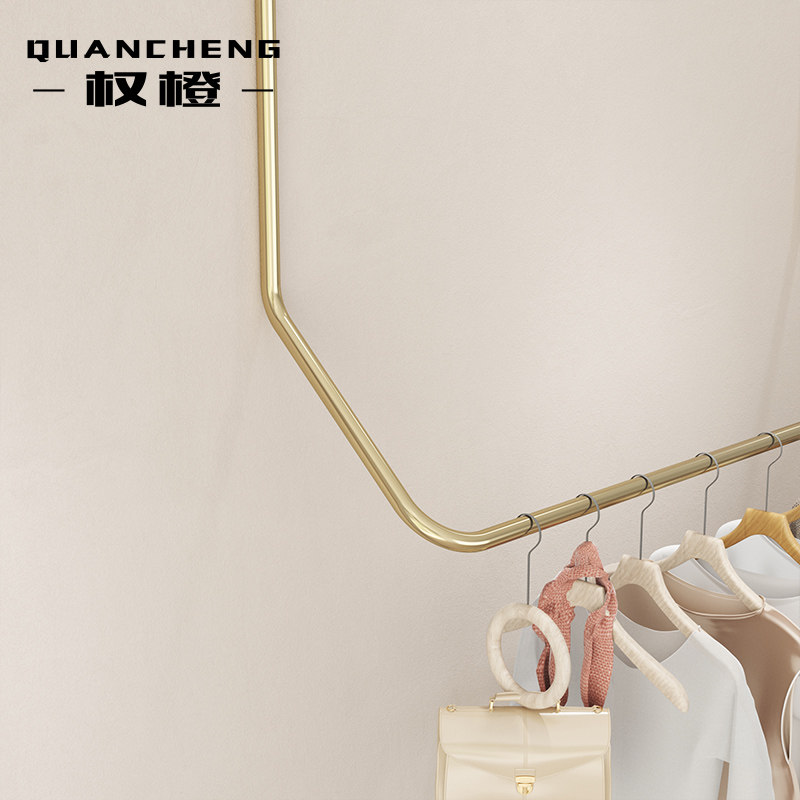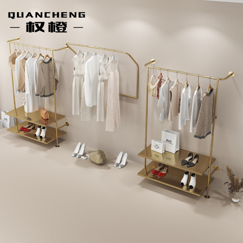 Clothing store display rack display rack wall-mounted stainless steel titanium gold hanging clothes rack simple women's clothing shelf