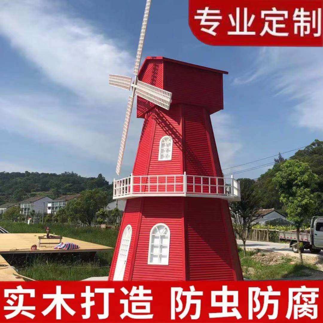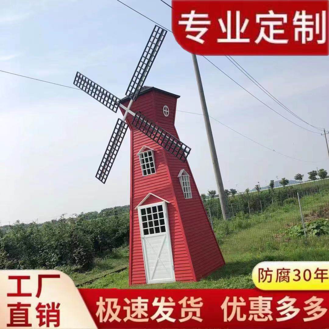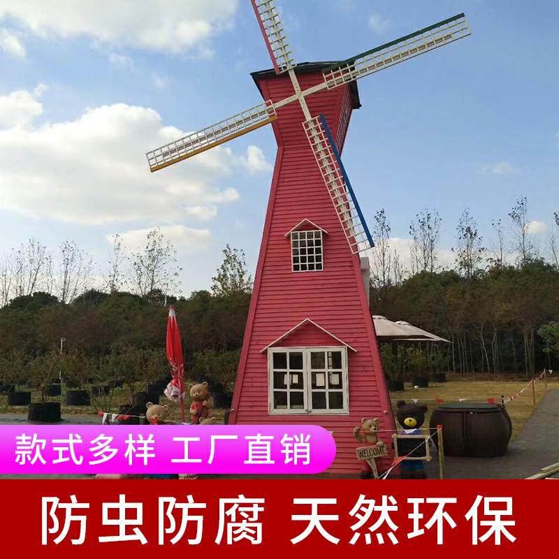 Factory direct sales of anticorrosive wood windmill landscape Dutch windmill outdoor decoration solid wood windmill rotating electric windmill