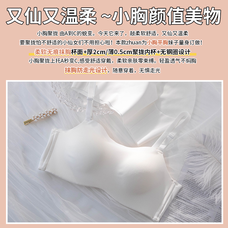 Tube top anti-glare underwear women's summer thin section small chest no steel ring gathering adjustment type wrap chest student seamless underwear cover