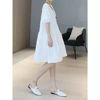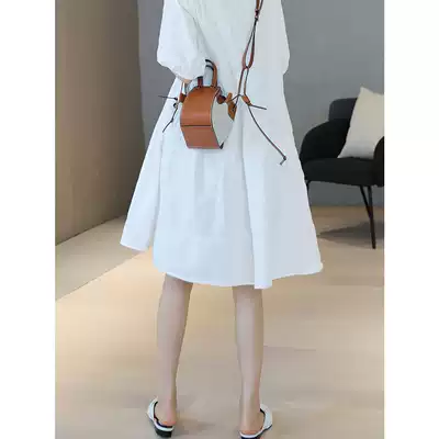 White dress 2021 summer New temperament loose thin age thin bubble sleeve design sense doll skirt
