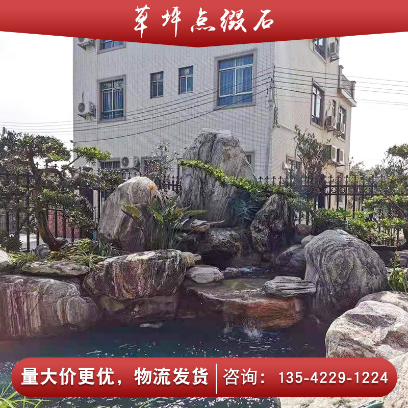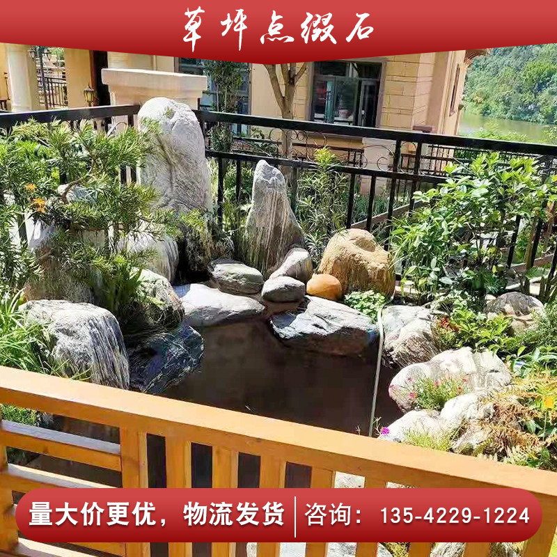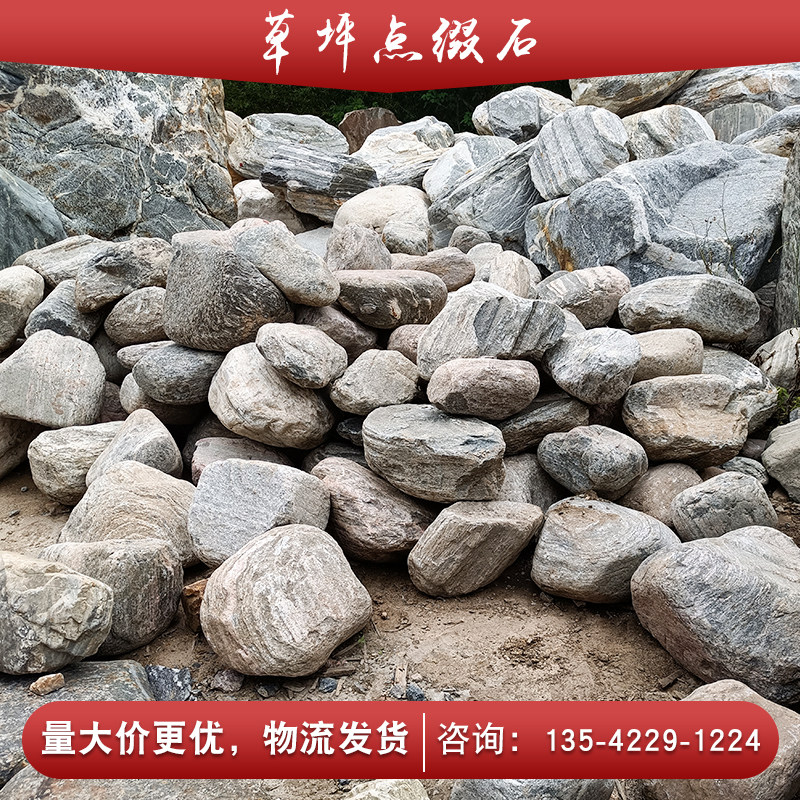 Outdoor courtyard natural Taishan stone landscaping lawn embellished original stone small size rounded texture stone real stone wholesale