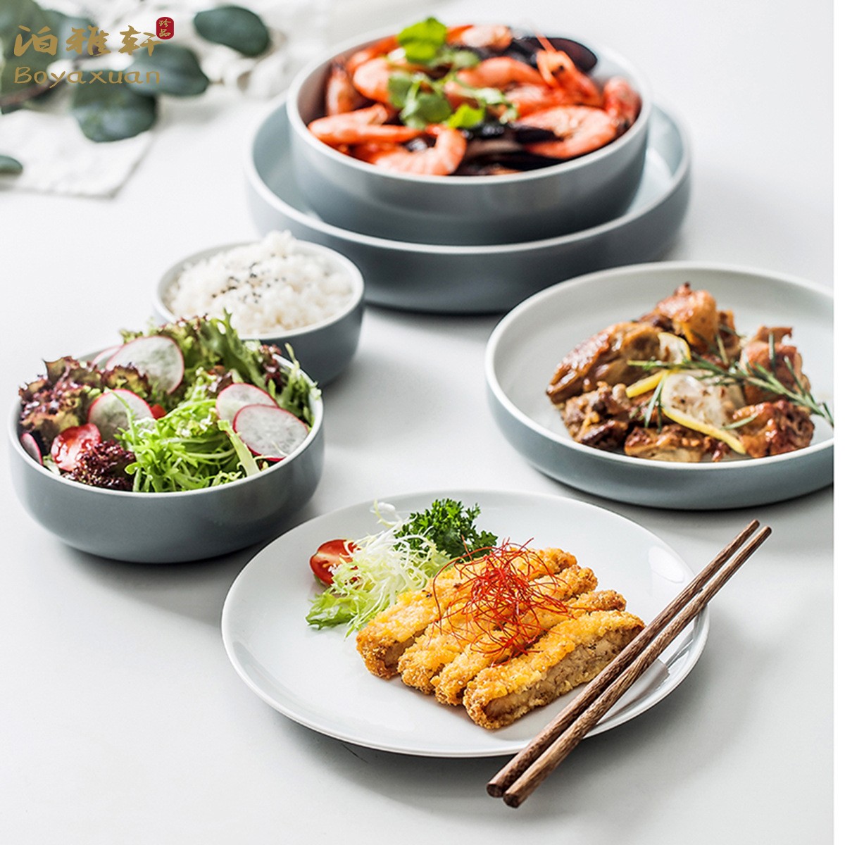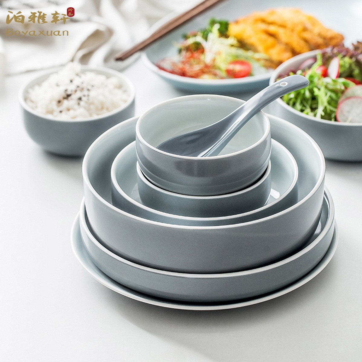 Bo Yaxuan bowl and dish set home eating bowl Nordic ins net red ceramic tableware simple bowl plate bowl chopsticks combination