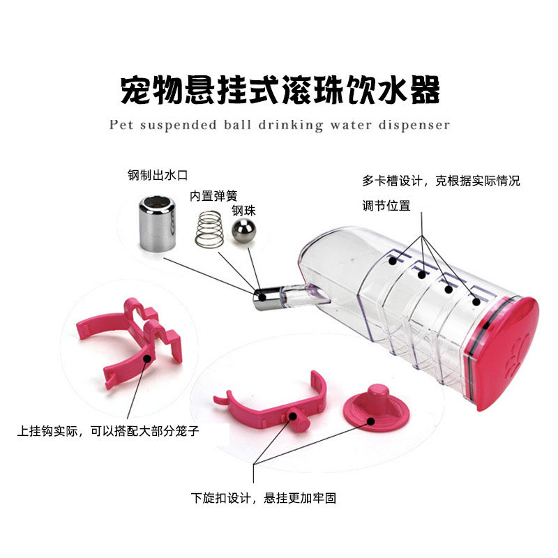 Pet hanging drinking fountain cat dog cage fixed ball automatic non-wet mouth pet box hanging drinking fountain