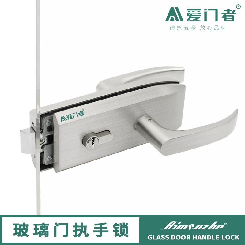 Glass door lock office high partition handle lock with handle single door notch flat mouth double door lock push-pull door lock