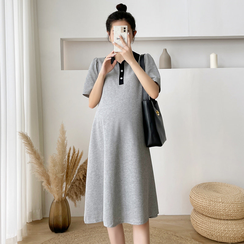Pregnant Women summer short sleeve top summer fashion lapel over knee loose cotton pregnant women dress summer maternity dress