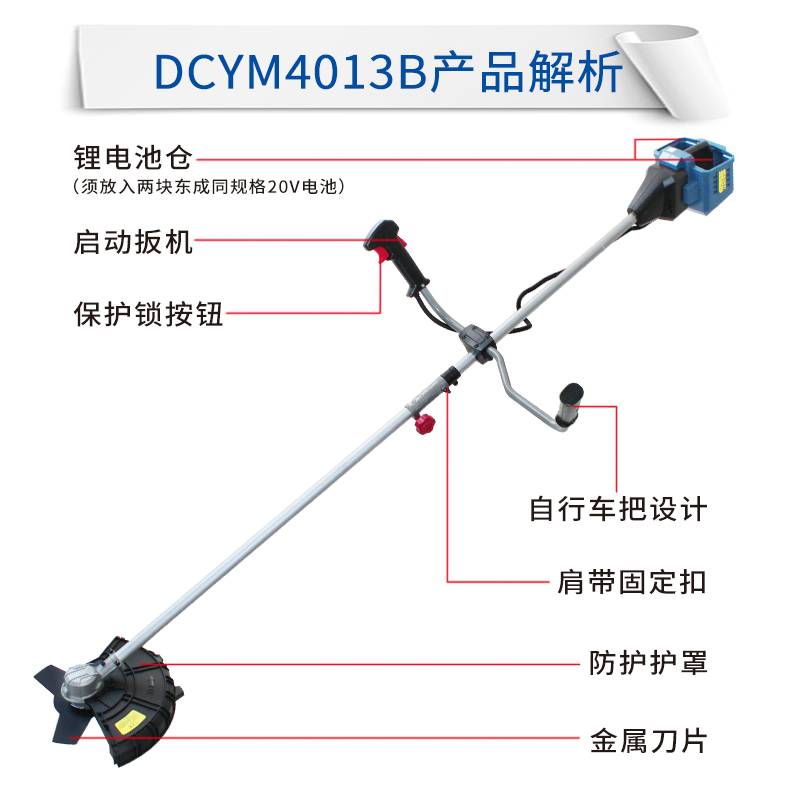 Dongcheng rechargeable lawn mower lithium electric brush cutter brushless 40V garden lawn trimmer DCYM4013B Dongcheng