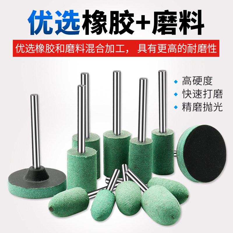 Rubber grinding head polished sleeve projectile cylindrical T-type 3mm metal polished jade polished small electric drill inner grinding head