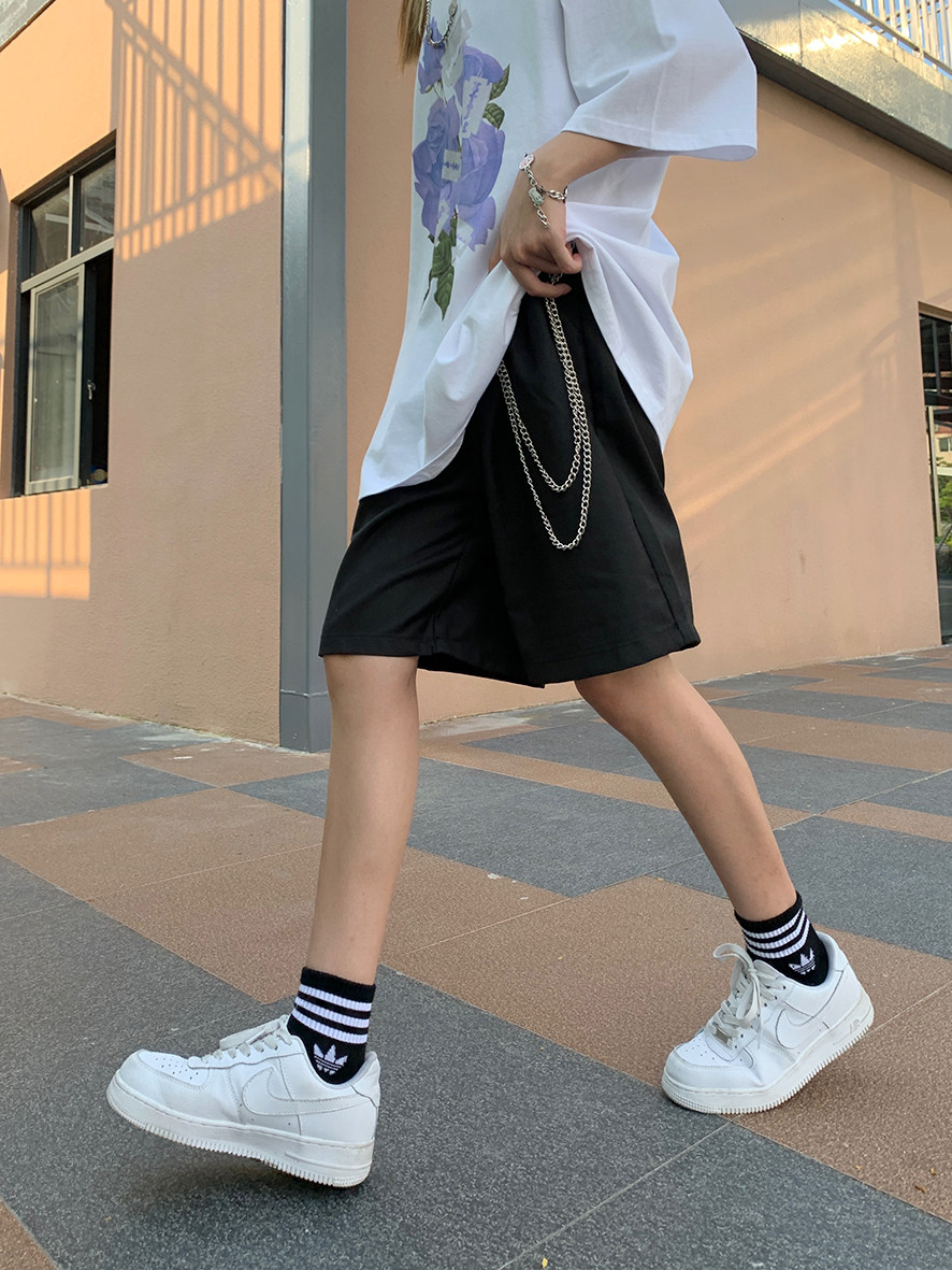 Legal alien American simple chain trousers men's and women's summer shorts loose five-point pants all-match high street straight