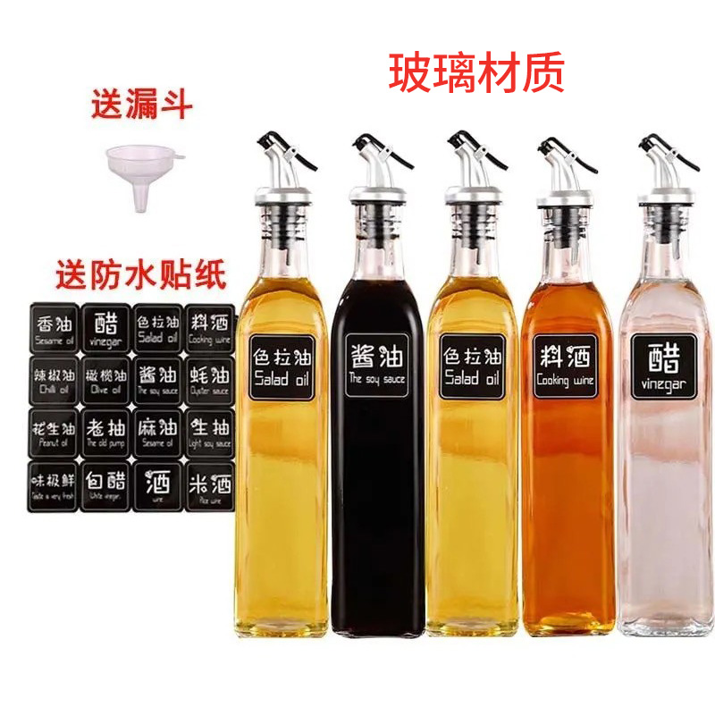 Vinegar bottle, soy sauce pot, seasoning jar, sealed salt, monosodium glutamate, raw soy sauce, glass bottle, restaurant kitchen, restaurant oil bottle