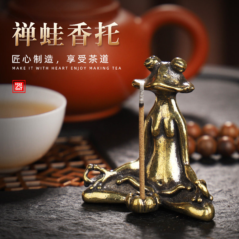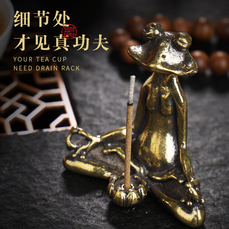 Antique copper furniture Zen frog solid brass grocery frog tea fragrance cup collection plays bronze packaging