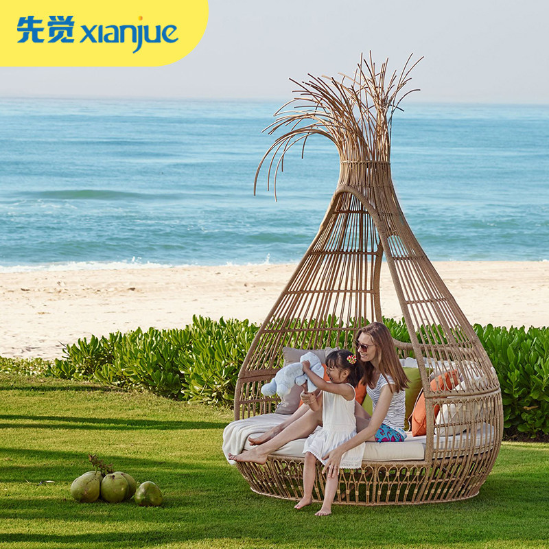 Outdoor lying bed rattan sofa original design courtyard sub-net red bird's nest chair outdoor round bed custom rattan furniture