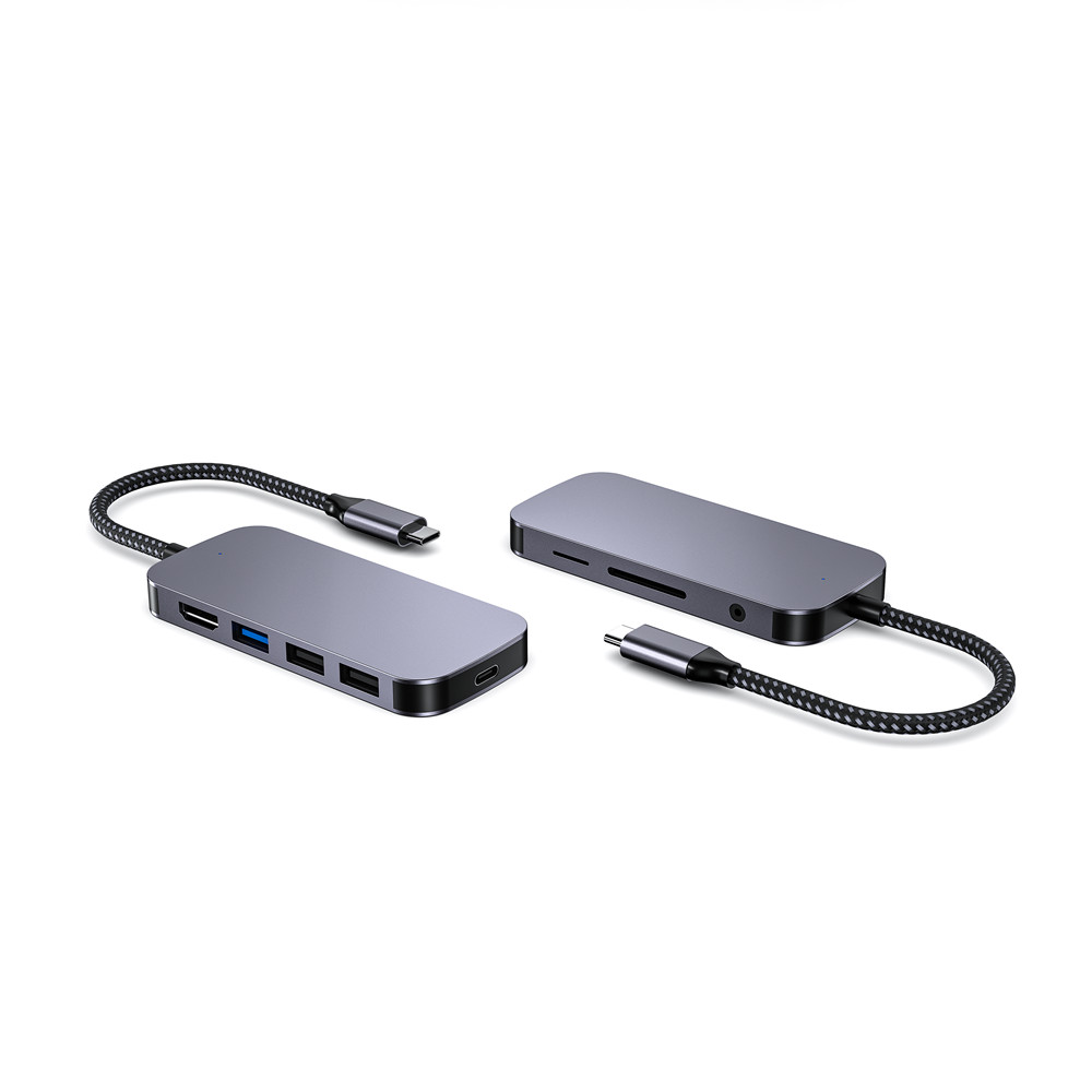 Type C to HDMI docking station eight-in-one multi-function card reader PD power supply aluminum alloy HD converter 4K
