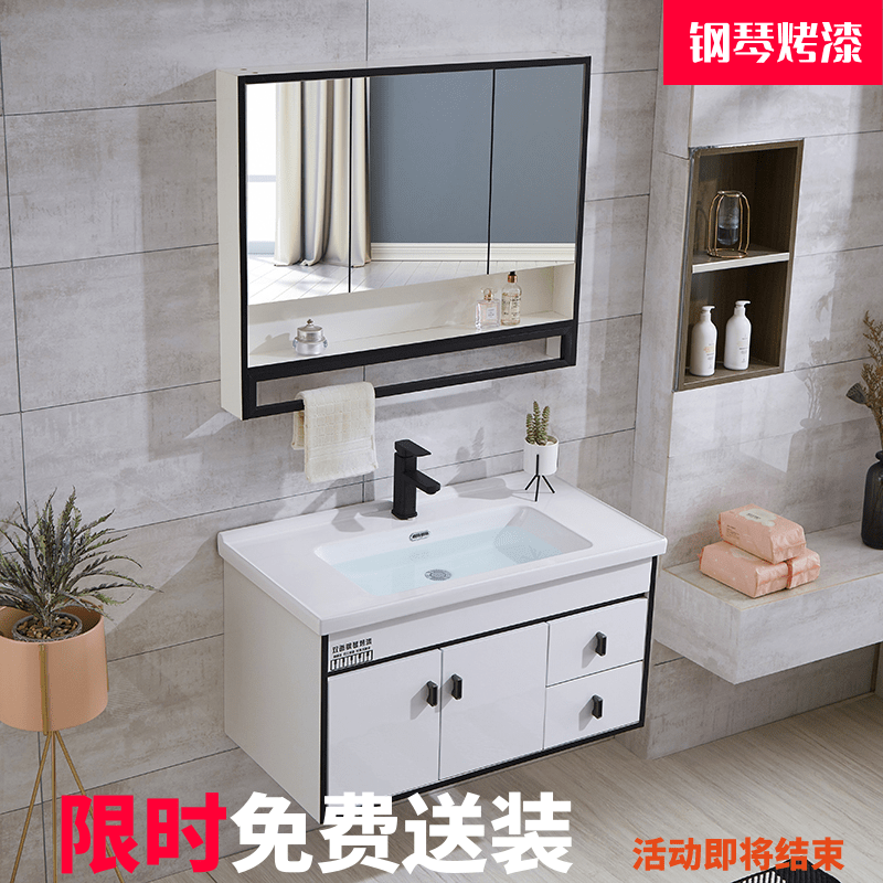 Solid wood piano paint bathroom counter basin cabinet combination wash basin wash basin bathroom cabinet powder room mirror cabinet