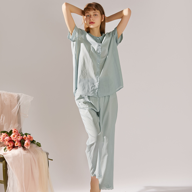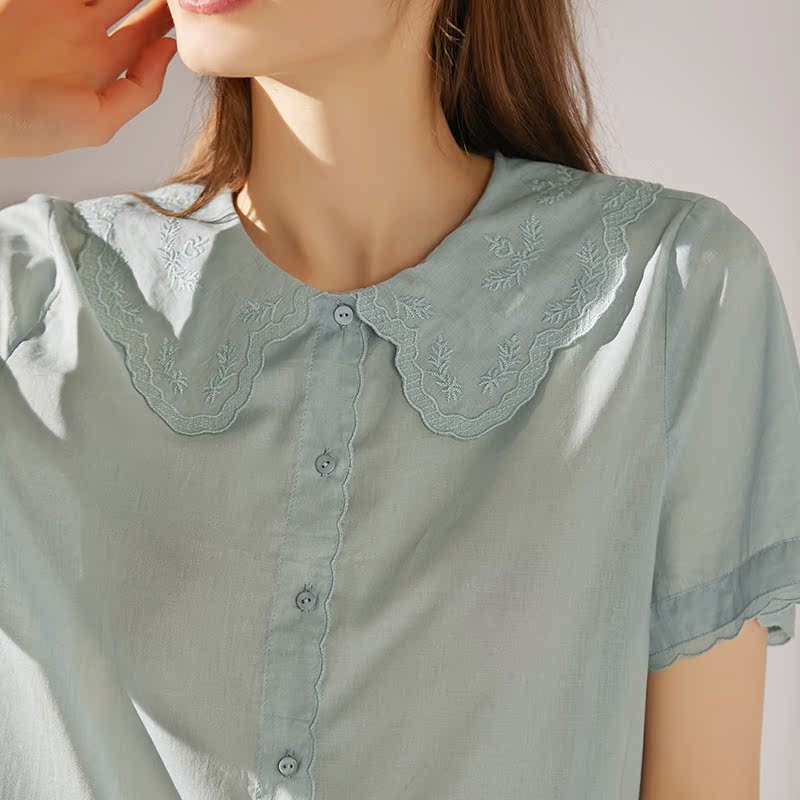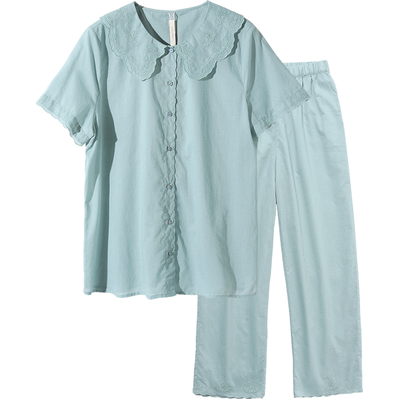 XEXZ2022 new pajamas women's summer thin section short-sleeved embroidery home clothes doll collar suit two-piece set