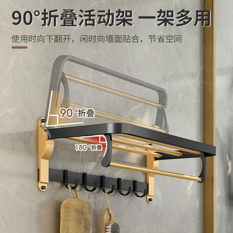 Towel rack Free hole space aluminum powder room shelf Wall-mounted bathroom towel rack Light luxury wind toilet storage shelf
