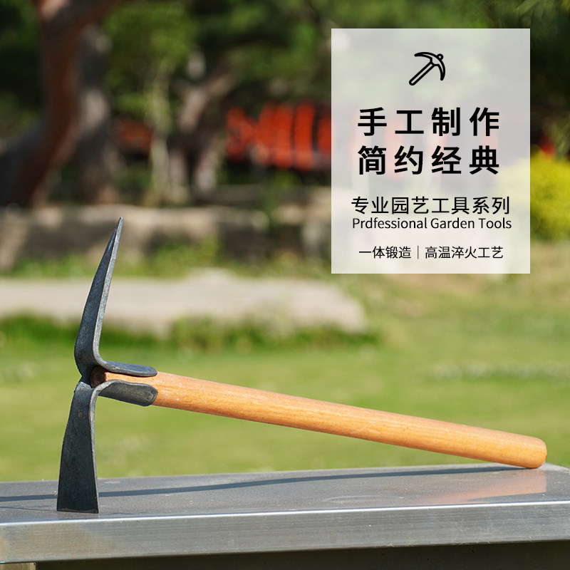 Small hoe wood handle forged and home dug ground seed Vegetable Weeding Garden Art Tools Versatile agricultural turnover rake pickaxe head