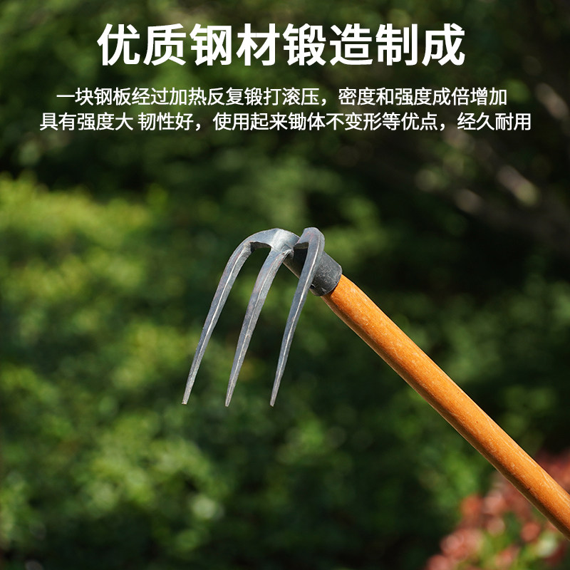 Integrated forged (flat-head hoe) integrated forged (two-end pick-hoe) integrated forged (one-tooth hoe) integrated forged (two-tooth rake) integrated forged (three-tooth rake) practical three sets of all-round five sets forged and flat