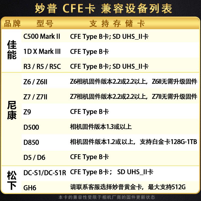 128G gold card recording 4K 30-60 frames video(small capacity is not recommended) 256G gold card 4K 30-120 frames video recording (small capacity is not recommended) 5