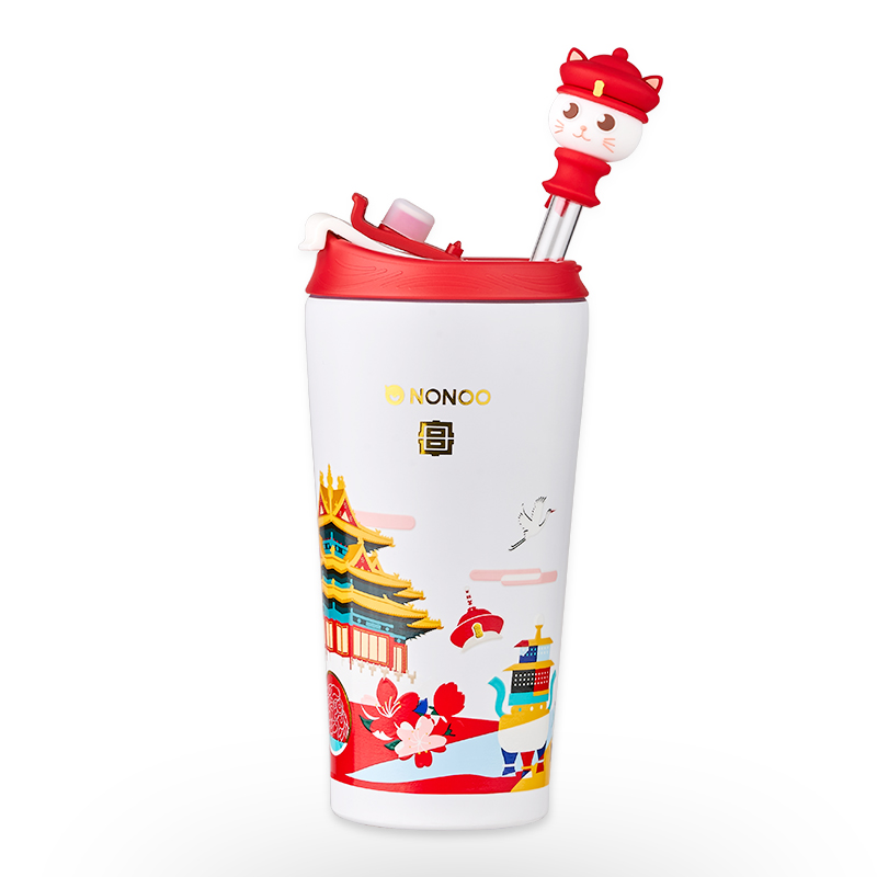 NONOO net red cute multifunction stirring cup Cartoon cup Caring water glass portable straw cup palace insulation cup