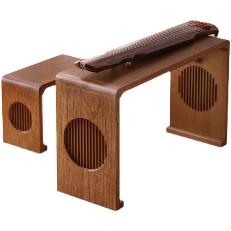 Solid wood guqin table stool integrated stool table light color Chinese style Zhuo shelf table and chairs professional table resonance box short table violin table