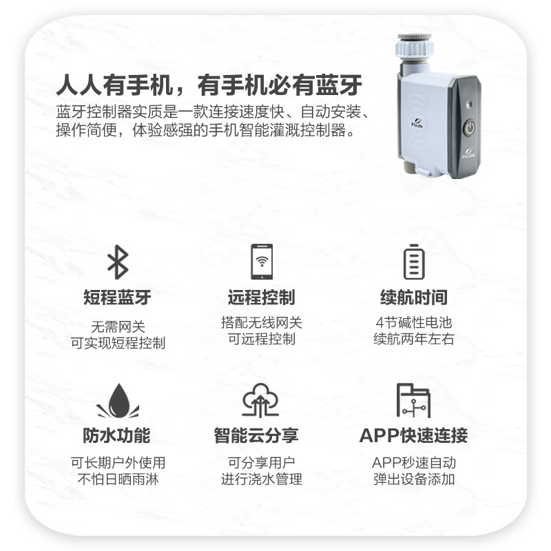 One upgraded second-generation Bluetooth controller (Bluetooth can also be used without gateway) 1 controller + 1 smart gateway (suitable for small flower beach in home garden) Upgraded second-generation Bluetooth rainfall controller WIFI Bluetooth Black Single Module Gateway V2 Single Smart Gateway Eight-hole adjustable 10m set (suitable for small flower pots) Adjustable drip spray dual-purpose 10m set (suitable for small flower potted trees) Cross atomization nozzle 10m set (suitable for vegetable garden, outdoor flower bed) Smart camera indoor version (APP can be controlled by linkage with flower waterer) Eight-hole adjustable 10m set gateway (suitable for small flower pots) Adjustable drip spray dual-purpose ground plug 10m gateway set (suitable for small potted trees) Cross atomization nozzle 10m set gateway (suitable for vegetable gardens, outdoor flower beds) Smart camera outdoor version (APP can be controlled in conjunction with flower waterer) Multi-functional 30m gateway set (suitable for small flower pots) Cross atomization nozzle 30m gateway set (suitable for vegetable gardens, Outdoor flower beds) Fountain Ground Insertion 30m Gateway Set (suitable for small flower potted plants) Gateway waterproof box Fountain Ground Plug 20m Meter Set Gateway (suitable for small flower pots) Multifunctional Ground Insertion 20m Gateway Set (suitable for small flower pots) Adjustable drip spray dual-purpose ground plug 20m gateway set (suitable for small flower potted trees) Dijiang 20m gateway set (suitable for small potted trees) Drop-spray dual-purpose adjustable ground plug nozzle 30m gateway set (suitable for large potted flower beds) Eight-hole adjustable floor nozzle 30m gateway set (suitable for large potted flower beds) Contact customer service before shooting the private custom link