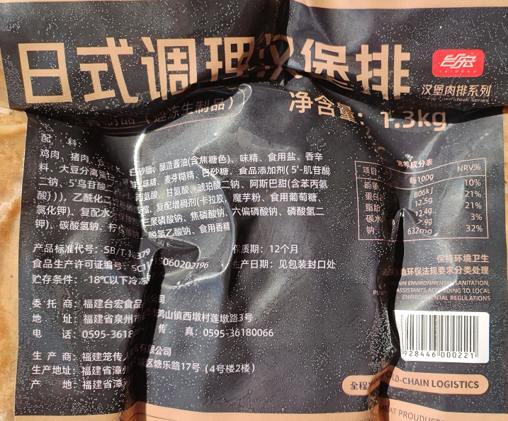 Table Macro Day Style Conditioning Burger Meat Pickled Pork Burger Bread Baking Raw Frozen Meat Products 1 3KG