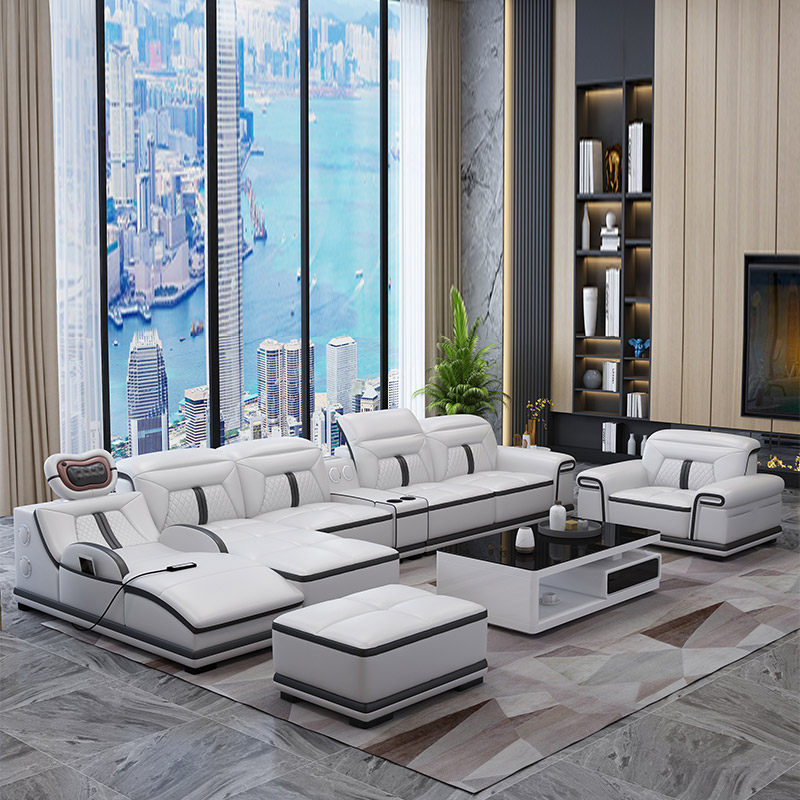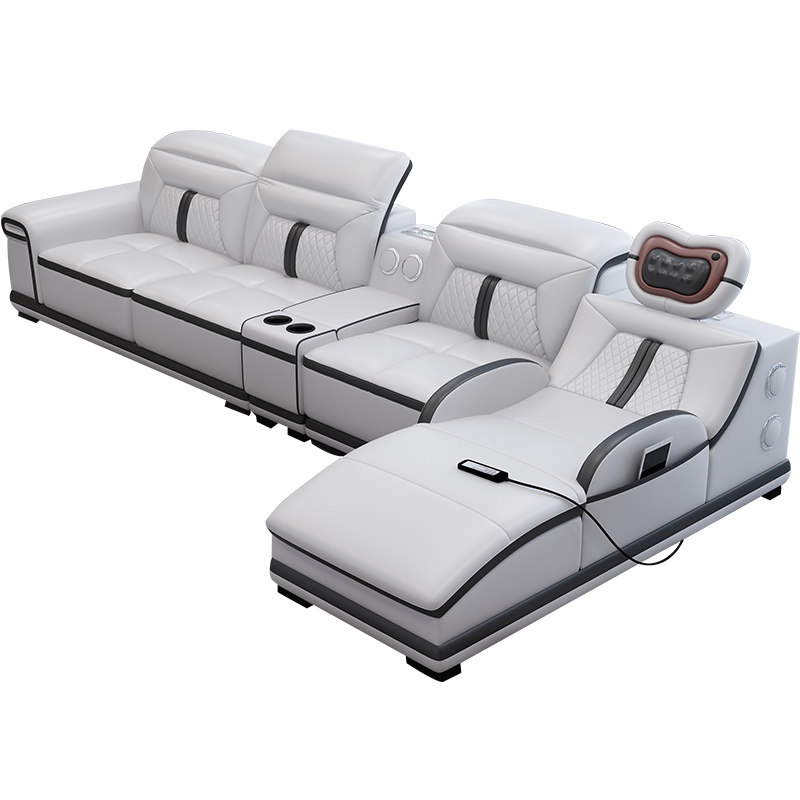 Intelligent massage leather sofa head layer cowhide combination single and double chaise longue living room medium thick leather modern minimalist small apartment