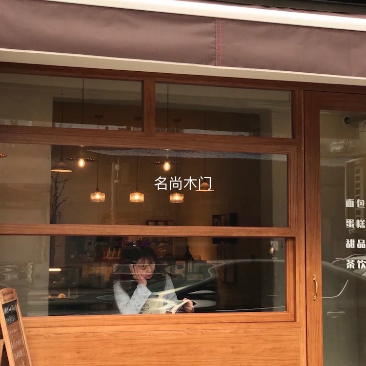 Custom pine outdoor door and window combination shop door face room wood glass door bakery snack bar wooden door