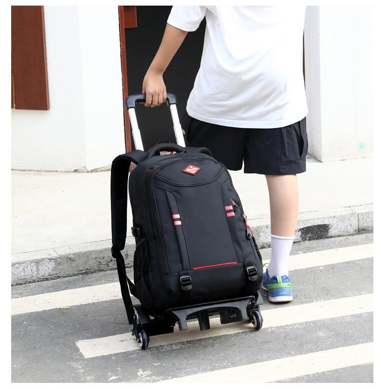 Drag rod school bag junior high school grade 7-9 large capacity high school with wheels big wheel 6 wheels climbing stairs plus size push rod bag