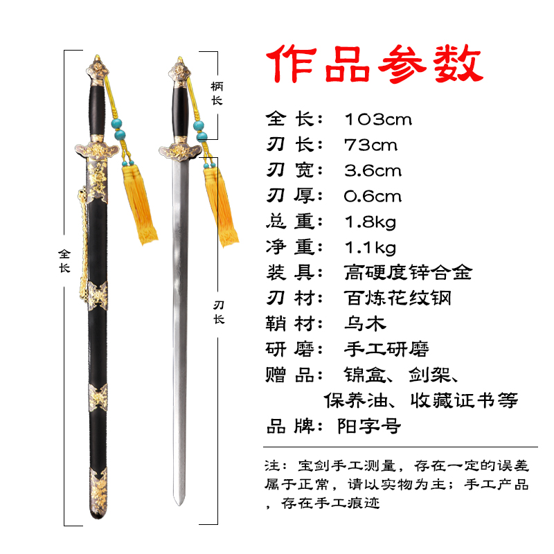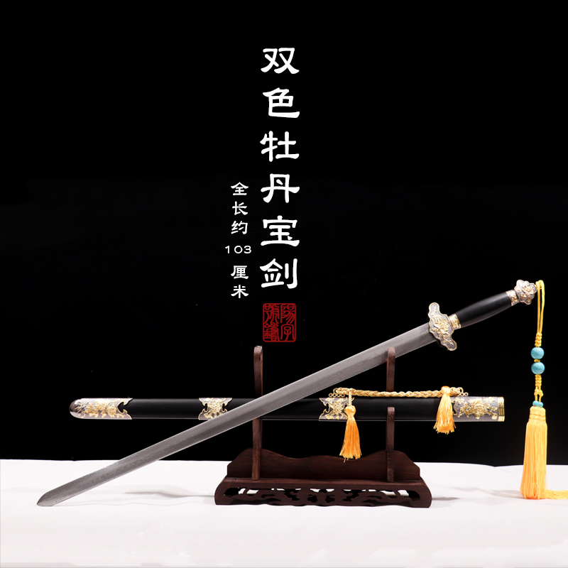 Peony Clear Sword Longquan Zhen Residence Bao Jian Sword Hanging Wall Style Decoration Long Sword Pattern Steel Integrated Knife Sword Cold Weapon Unopened Blade