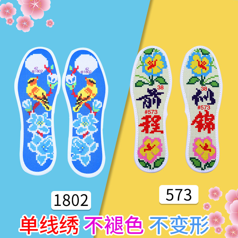 Thickened cross stitch insole for men and women handmade semi-finished product embroidery printing non-fading pinhole with needle thread semi-finished product