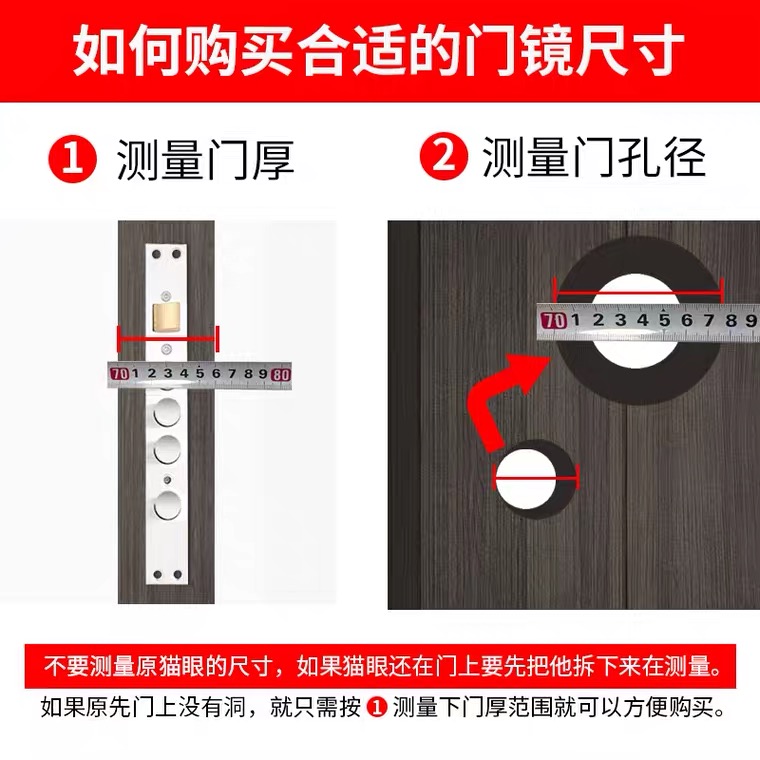 Cat's eye door mirror anti-pry home high-definition wide-angle old-fashioned anti-theft door cat's eye general plastic ordinary with back cover 14mm