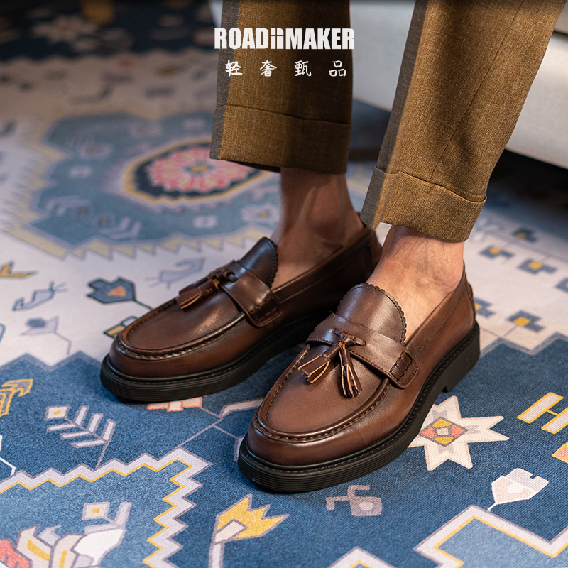 ROAD MAKER NEW GENUINE LEATHER LEATHER SHOES Breathable Suit Head Layer Cow Leather Soft Bottom Casual Leather Shoes Men's Summer